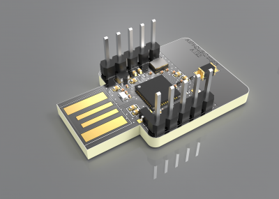 AiPi-SLE-Dongle是由深圳市安信可科技有限公司基于BS21设计的一款PCBA。其作为无线Dongle,将USB口使用金手指设计Layout,通过USB口模拟HID设备在PC上挂载,搭配其它的星闪设备可实现无线通讯。AiPi-SLE-Dongle带有一个LED的状态指示灯,此外,还引出了串口与部分IO,方便进行其它的软件设计和烧录。